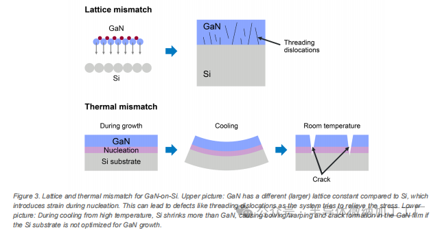 图 3. GaN-on-Si 的晶格和热失配。