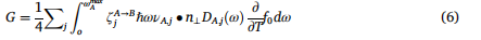 其中,ζ是声子传输系数,ℏ是约化普朗克常数,ν是群速度,n⊥是界面的单位法向量,D是声子态密度,f0是玻色–爱因斯坦分布函数,A和B下标表示两种材料。在AMM和DMM中,传输系数计算如下: