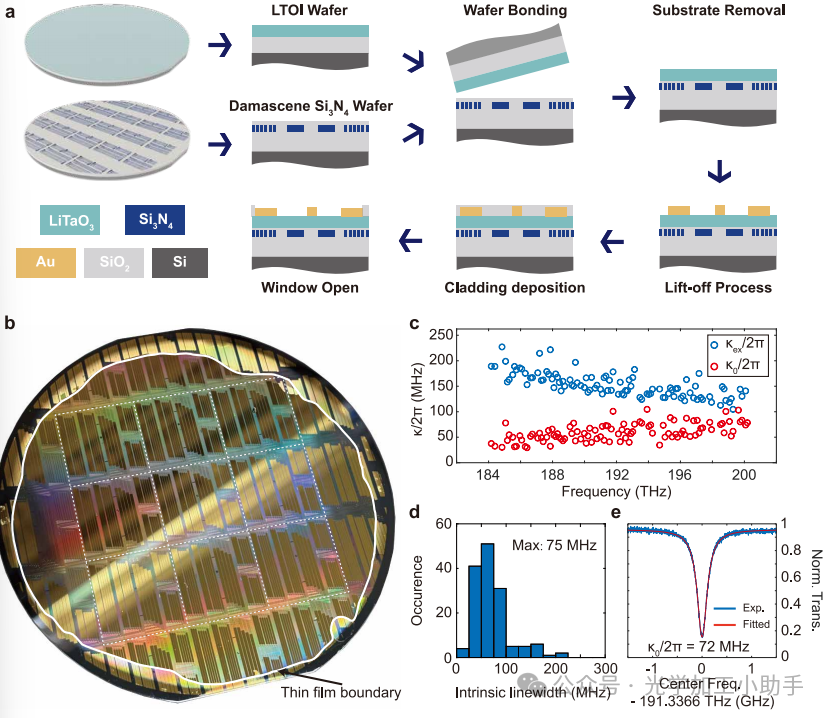 图1. Si3N4-LiTaO3光子集成电路的晶圆级制造。