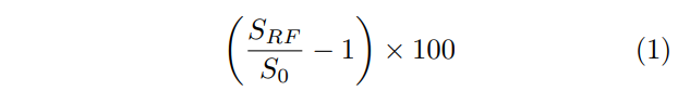 通过驱动与 2Dgs 匹配的射频频率,可以实现电学自旋态对比度,从而增加 ± |3/2⟩ 的占据量。这本质上减少了亚稳态的占据,因此更多的电子可以电离到导带,导致光电流的可测增加。自旋态对比度使用方程(1)计算,然而信号 S 是测得的光电流的大小。