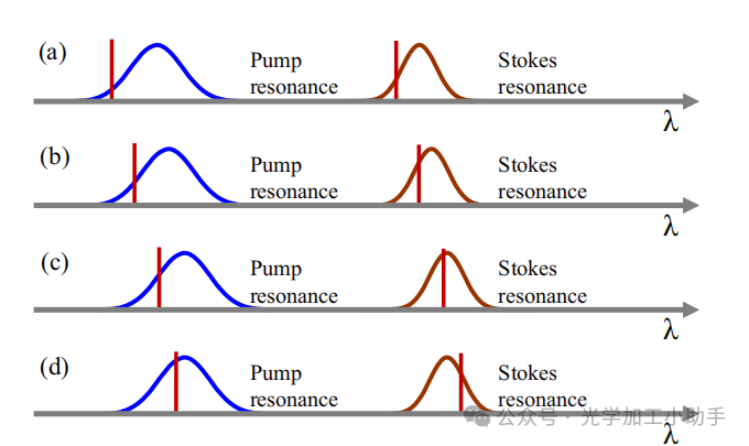 对于基模,高质量因子有助于有效地将能量转换为邻近的四波混频梳[见图2(b)]。然而,未观察到斯托克斯信号,表明该泵浦模式下没有高Q模式与拉曼增益谱重合。
