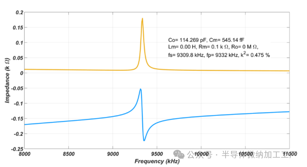 为了评估性能,测量了在EC-SOI和C-SOI晶圆上制造的PMUT的晶圆级阻抗响应。图6显示了PMUT阵列的阻抗响应以及从阻抗响应推导出的PMUT电气等效模型。