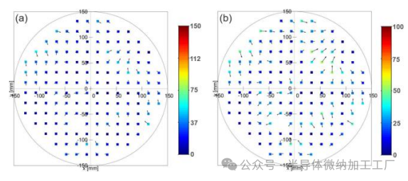 b) 残余矢量晶圆图。