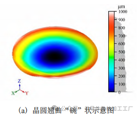 在退火过程中,翘曲硅片的形貌变化表明,晶圆在退火初期呈现中心下凹四周上翘的形状呈现“碗”状。如图 8 所示形状,而随着退火时间的延长,晶圆逐渐由“碗”状转变为“马鞍”状最后变成“薯片”状,即不断 X 方向下凹而 Y 方向上翘。