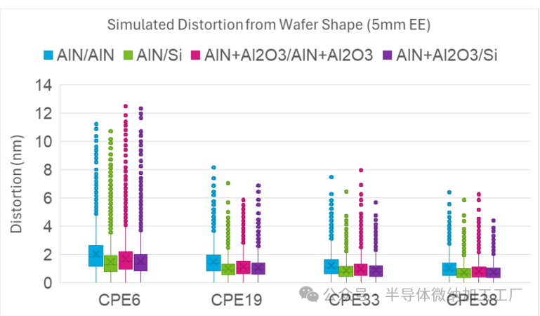 最终,30nm AlN + 3nm Al2O3 / 3nm Al2O3 + 30nm AlN的组合显示出较低的失真,其Mean+3σ