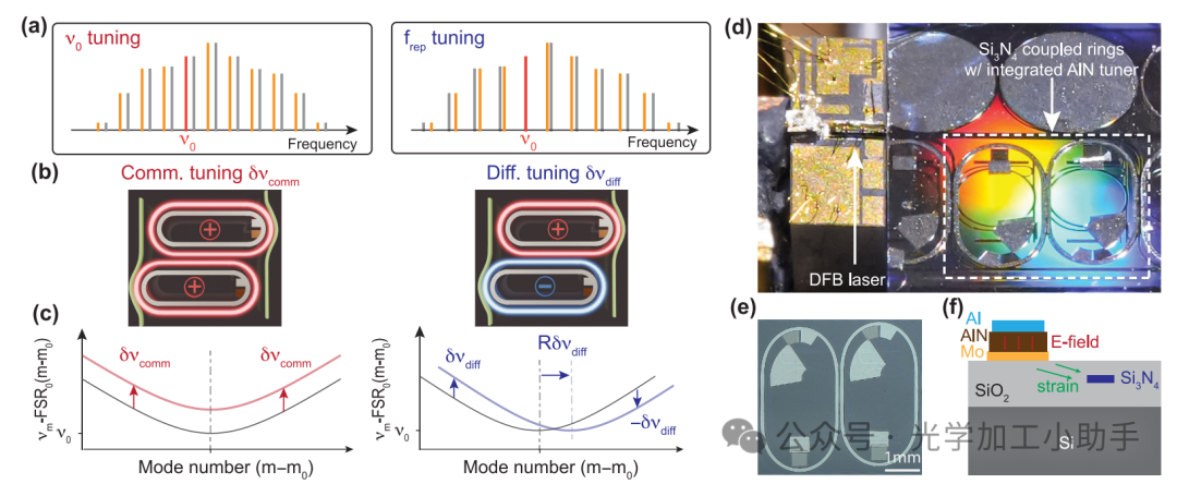 图 1. 微梳偏移频率和重复频率的集成可分离调谐。