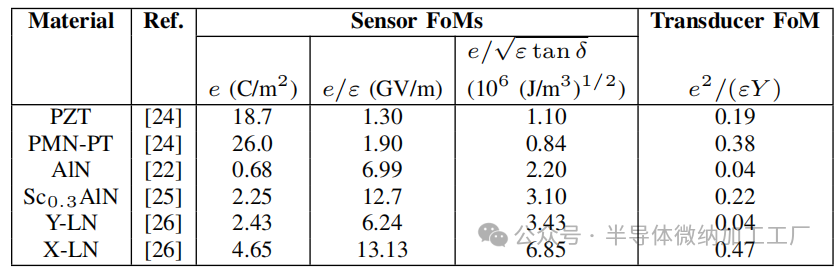 表 I.压电材料的传感器和换能器性能指标(FoMs)
