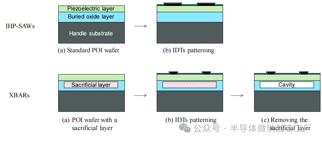 图 8. IHP-SAWs 和 XBARs 的晶圆工艺。