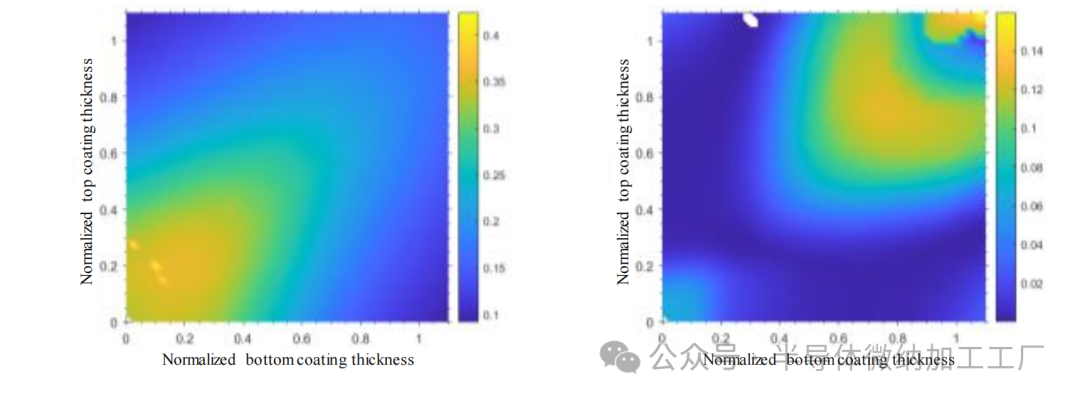 其中,fa 和 fr 分别是反共振频率和共振频率。在某些设计空间中,通过调节上下涂层的厚度,可以使第三次谐波模式的 keff2 变小。需要补充的是,夹层堆叠还带来了制造简便性和耐用性方面的额外优势 [44]。