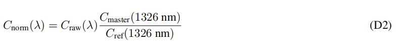 表C2. 显示相对于激发405nm时自身高度的拟合相对峰值高度,作为激发源的函数。图C7. 反射率、透射率和吸收率相对于参考功率,在入射角为30°且偏振平行于入射平面的情况下