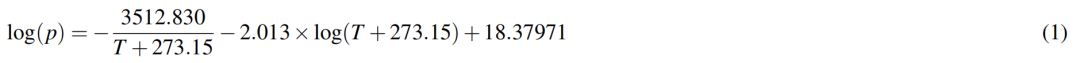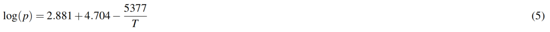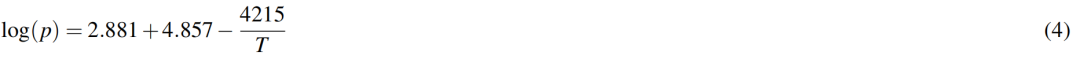 其中,T 是温度(以摄氏度为单位),p 是碘蒸气压(单位为帕斯卡)。对于室温 T = 25°C,池中碘的蒸气压大约为 41.4 帕斯卡,或 310 毫托(mTorr)。